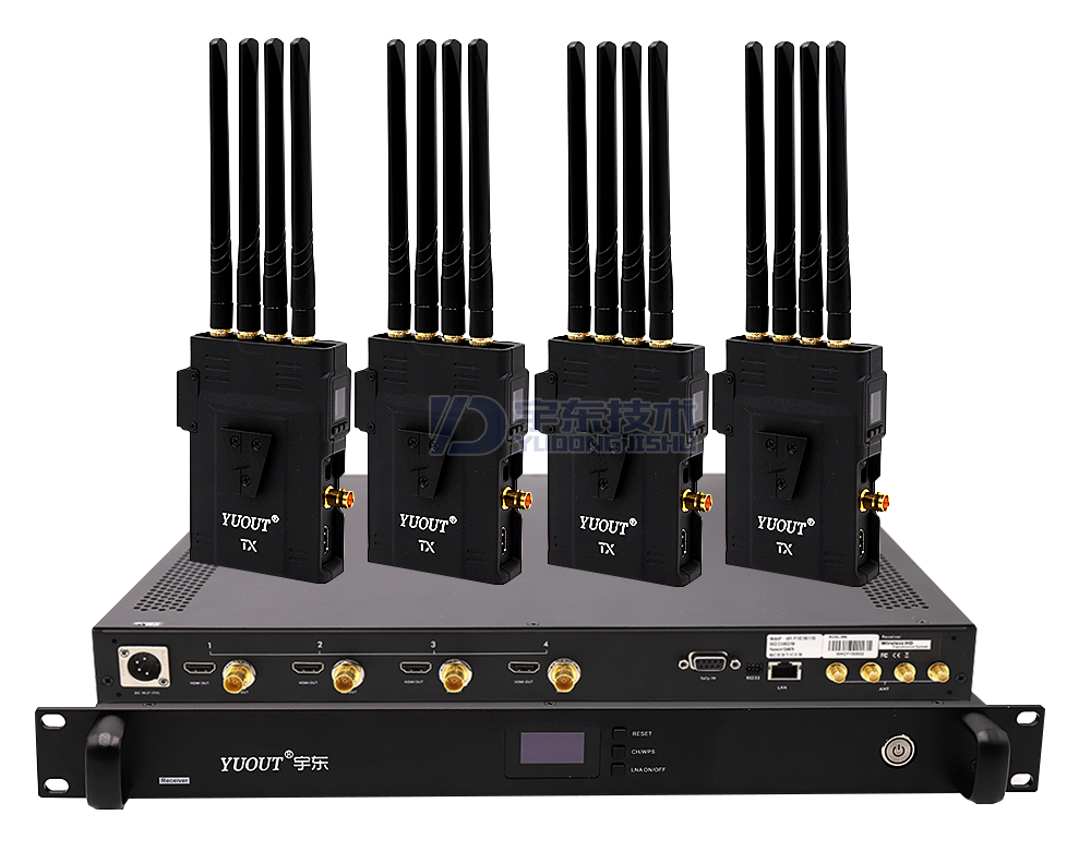 極光2000U一拖四無線圖傳采用的是4X4 MIMO方案,本產品包含4臺發射器和1臺接收器(集成了4個接收模塊,可以同時接收4臺不同發射機的視頻信號),并且都配備了3G/HD SDI接口和全高清HDMI接口??梢酝ㄟ^軟件配置的方式來更改天線的工作頻率,以適應全球不同區域的無線傳輸要求。 同時,在發射器側面和接受器正面,配備了通信通道選擇按鍵,可以手動配置11個不同的通信通道,非常方便。